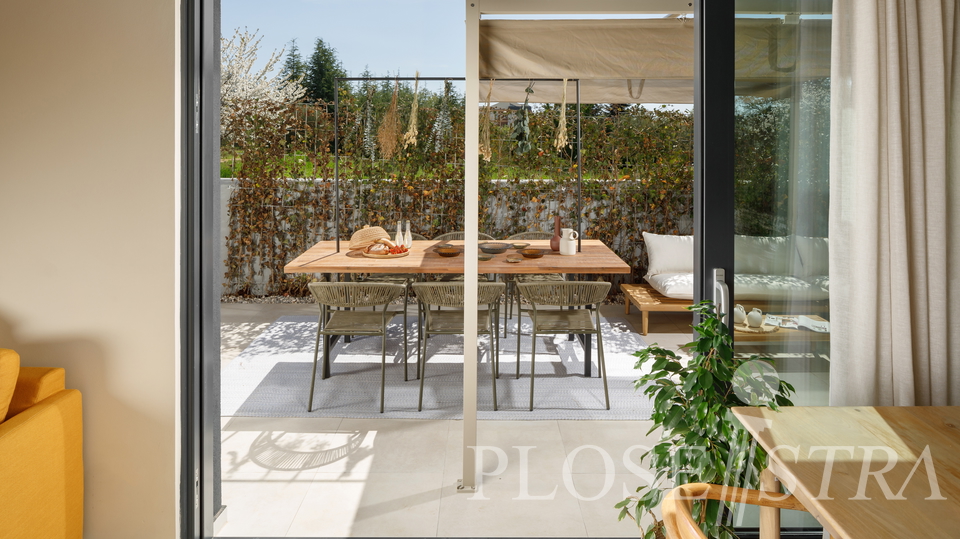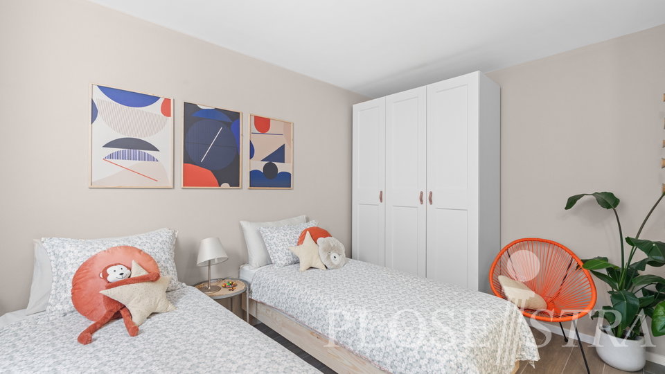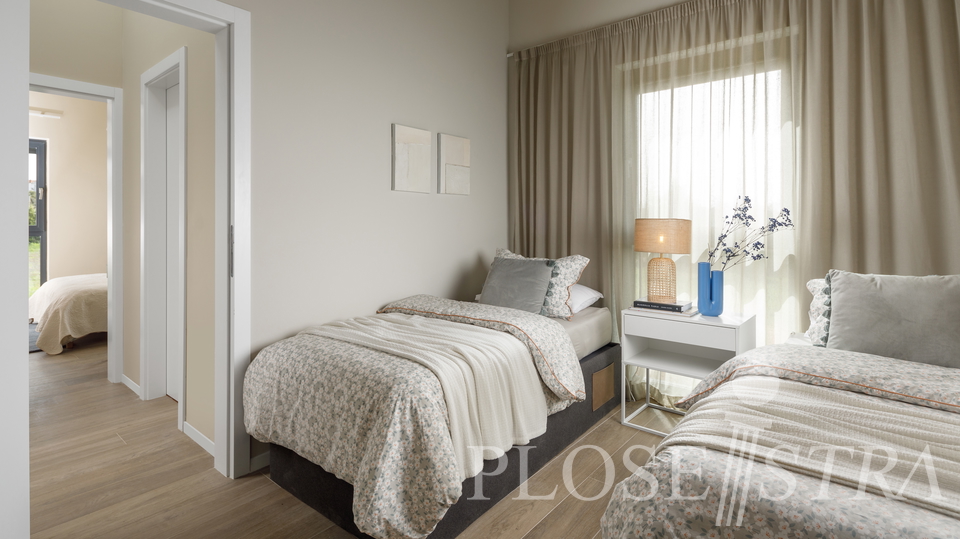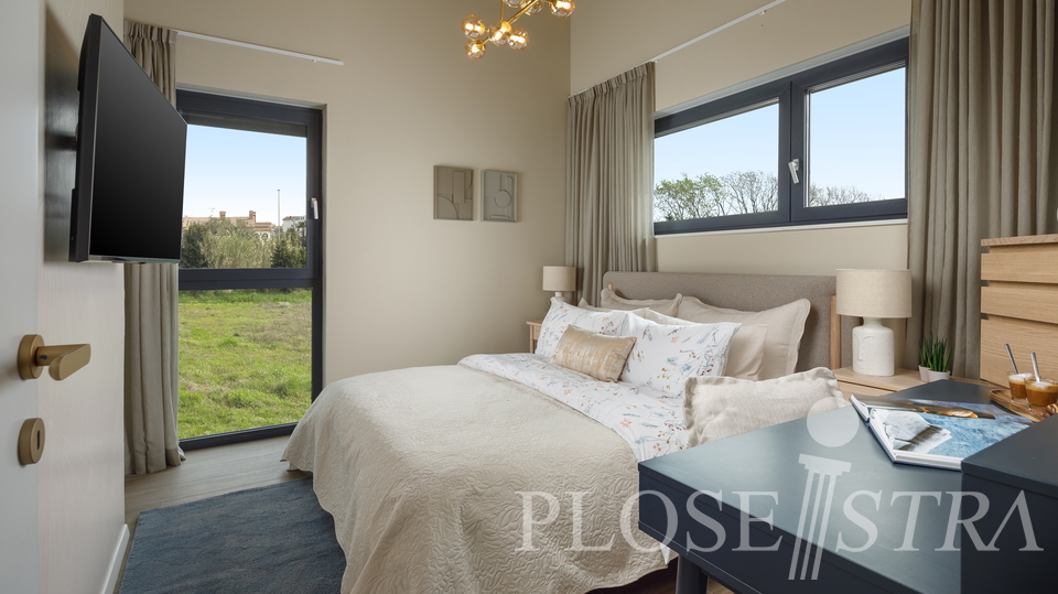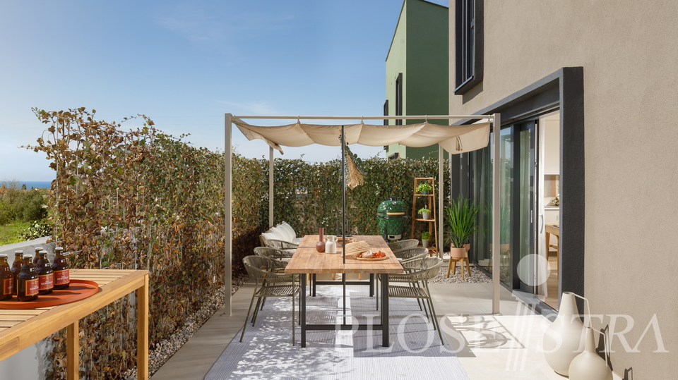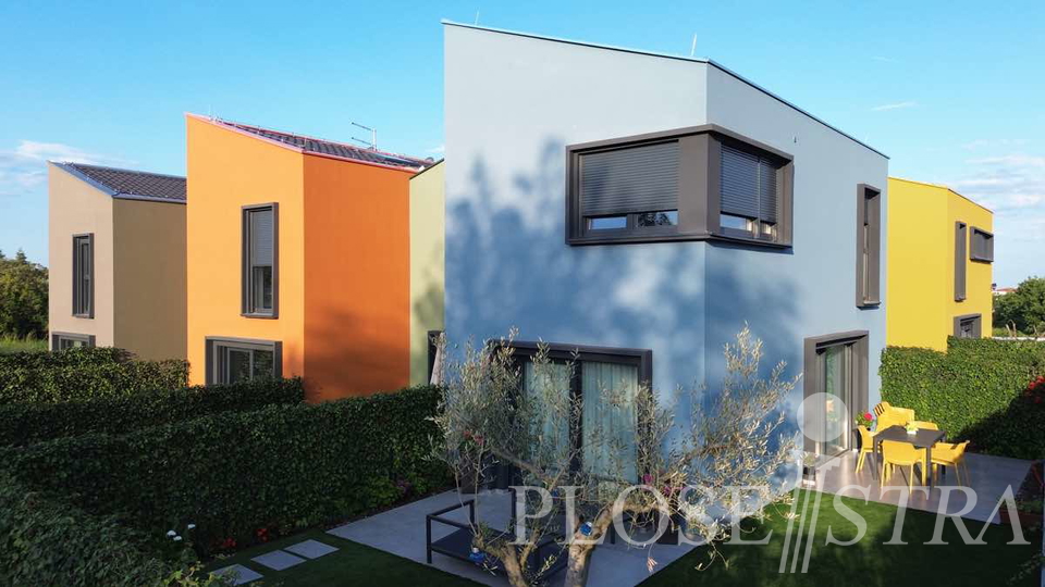Na prodaju je moderna kuća u nizu, površine 103 m2, izgrađena 2023. godine, smještena na mirnoj lokaciji u Poreču. Ova nekretnina nudi savršen spoj suvremenog dizajna i funkcionalnosti, pružajući ugodan životni prostor pogodan za različite profile kupaca.