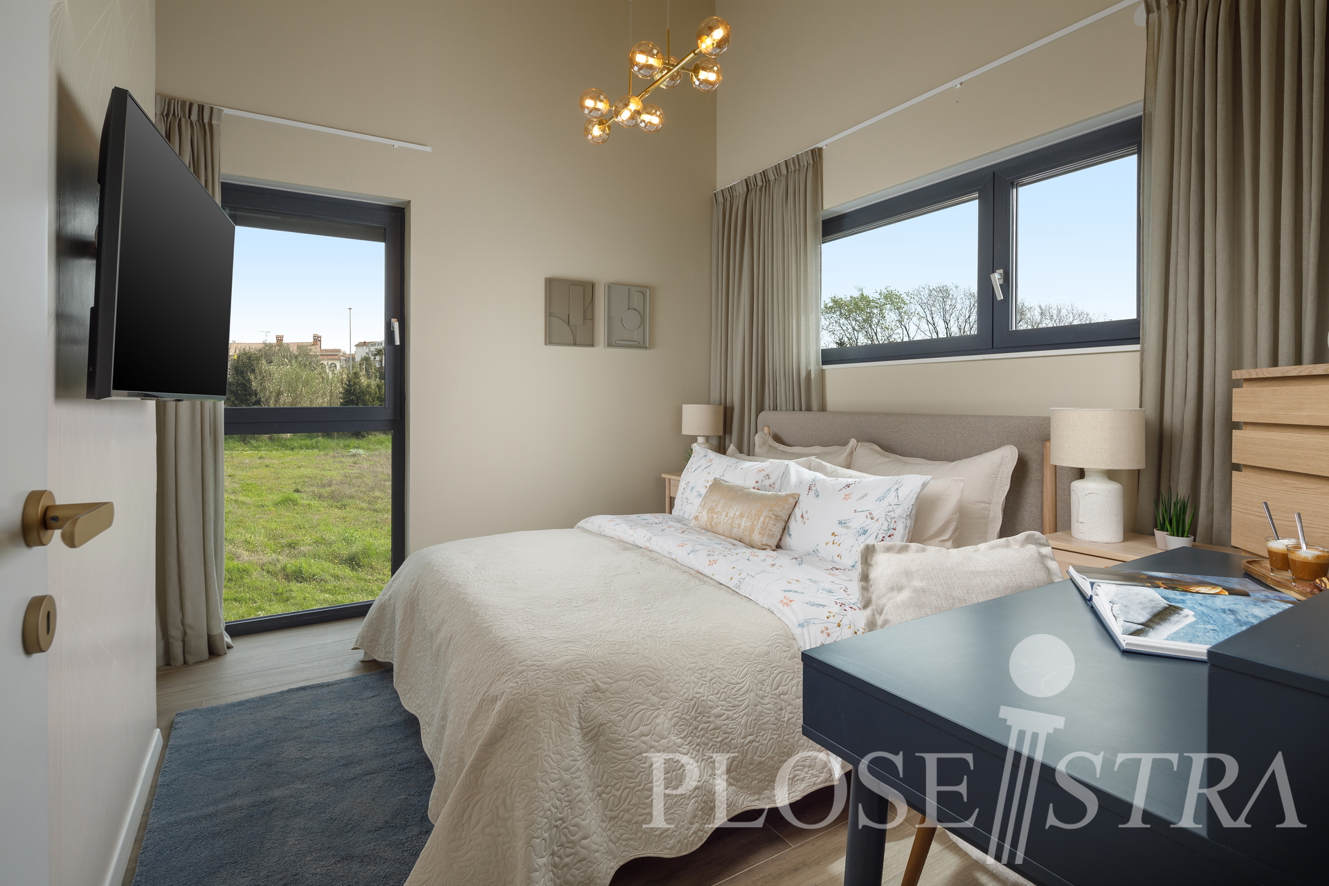 Posebna pažnja posvećena je udobnosti i luksuzu. Kuća je klimatizirana, a dodatnu vrijednost pružaju jacuzzi i roštilj, dok dizajnerski elementi interijera pridonose suvremenom ugođaju. Dvorište pruža privatnost i prostor za opuštanje na otvorenom, a dostupno je i parkiralište.