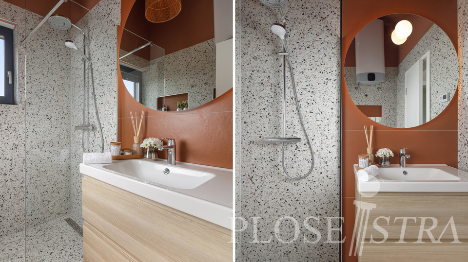 Lokacija kuće osigurava mir i privatnost, a ujedno omogućuje brz pristup svim važnim sadržajima i infrastrukturi, što čini svakodnevni život praktičnim za obitelji, zaposlene pojedince ili turiste.