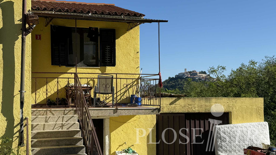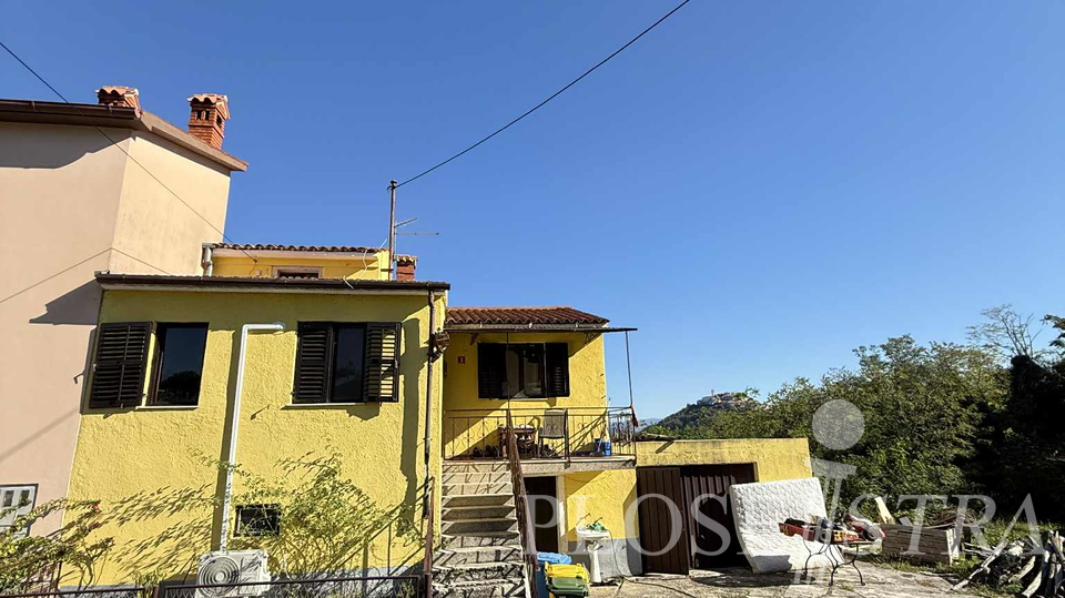 Na prodaju je dvojna kuća površine 200 m2 smještena u mirnom selu kraj Motovuna. Svojom lokacijom i pozicijom pruža jedinstveni pogled na Motovun, dolinu rijeke Mirne te okolne brežuljke! Kući pripada i 2.275 m2 okućnice, od čega je cca 700 m2 u građevinskoj zoni te su infrastrukturni priključci do terena. Ostatak okućnice je poljoprivredno zemljište koje se proteže do Parencane, vrlo popularne i atraktivne biciklističke staze. Na jednom djelu okućnice nalazi se i vrlo lijepi potok, što je uistinu rijetkost koja pruža stvaran dodir sa prirodom.