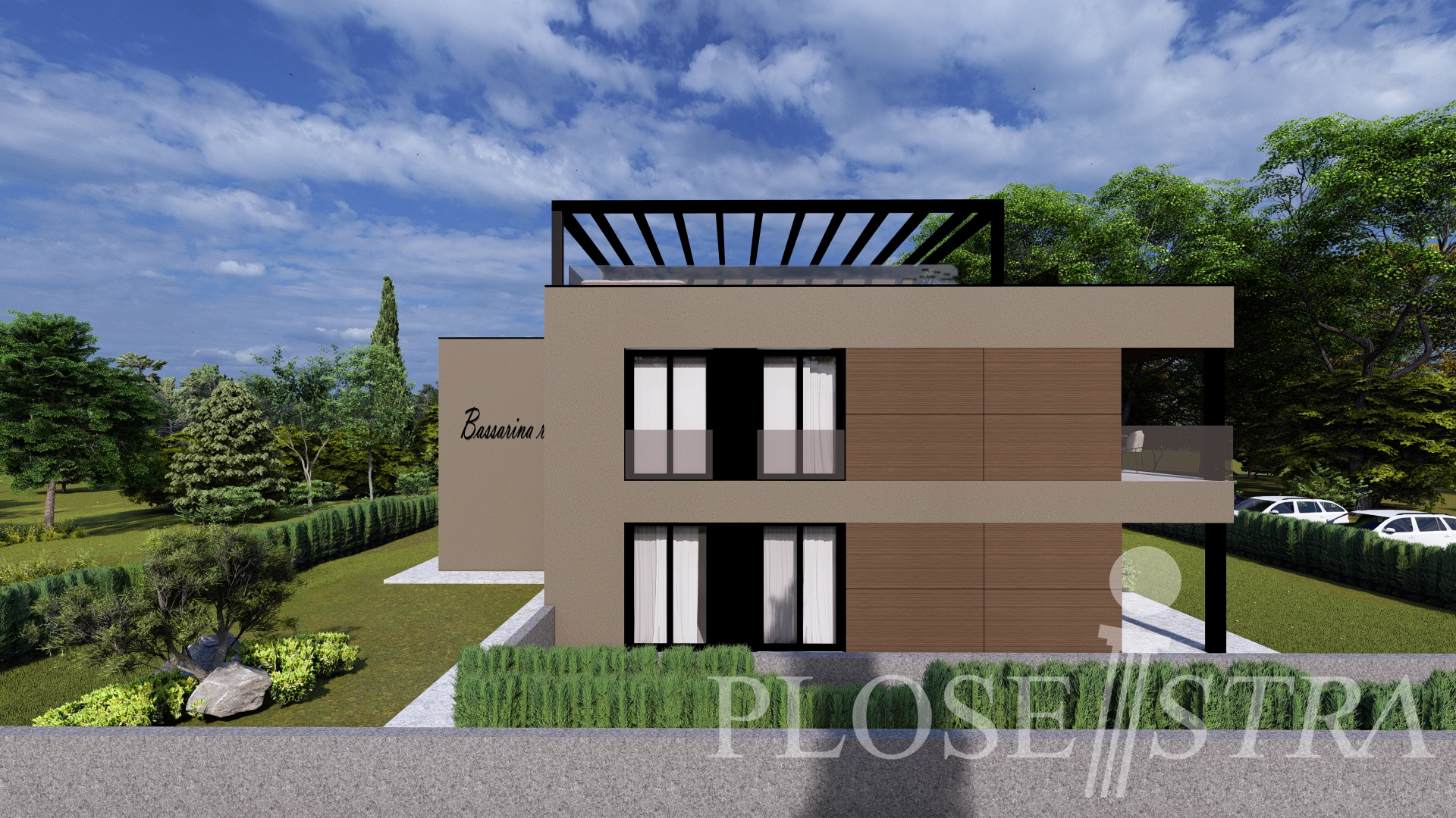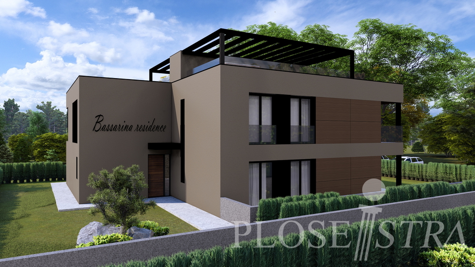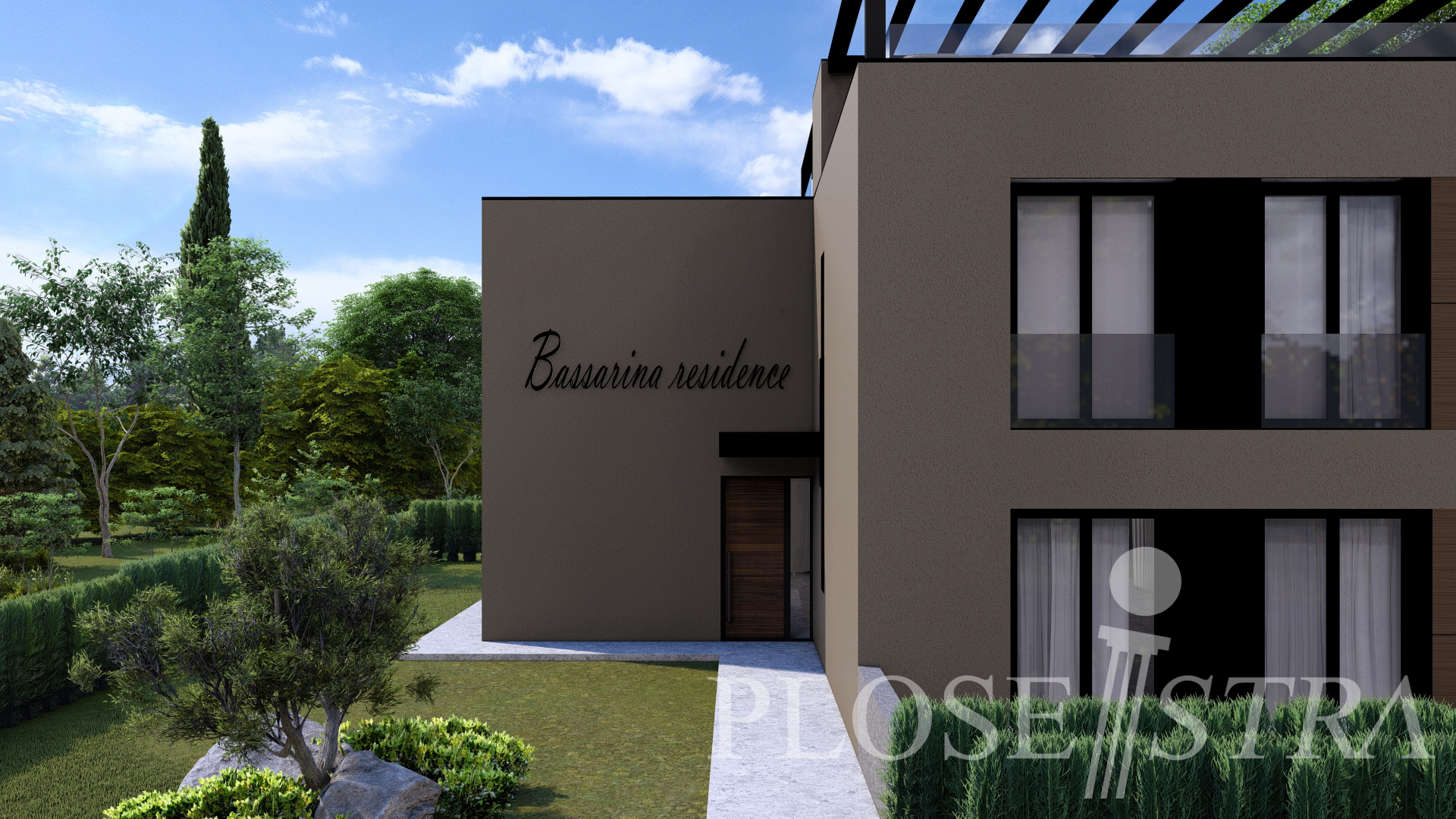 Predstavljamo vam dvosobni stan površine 53,55 m2, smješten na prvom katu novogradnje u atraktivnom naselju Bašarinka u Poreču.